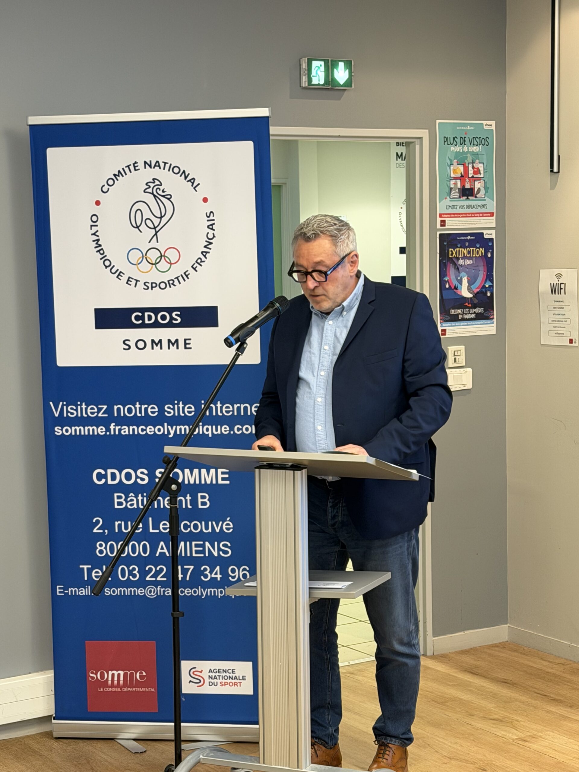 Thierry Dambrine le président du CDOS a animé sa 1ère 'assemblée générale du CDOS.Cette assemblée générale du CDOS arrivait une semaine après l'élection municipale d'Amiens ce qui explique qu'aucun représentant de la ville d'Amiens était présent. Les offficiels présents étaient Margaux Deletré, VP aux Sports du département et Véronique Sanchez Directrice Académique Adjointe des services de l'Education Nationale.